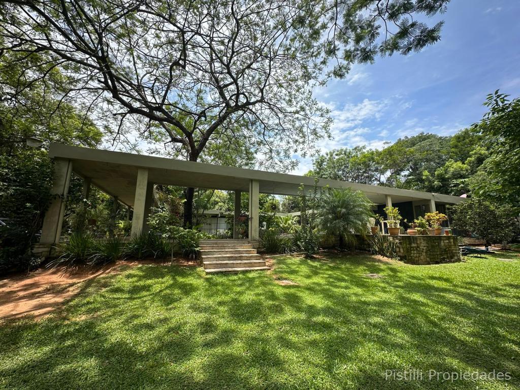 Amplio patio empastado y forestado que proporciona sombra natural y frescura.
