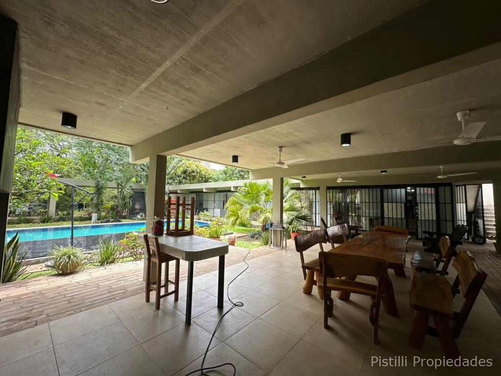 Piscina: 30.000 litros, con hidromasaje y cascada alrededor.Terraza 360° rodeando toda la construcción.