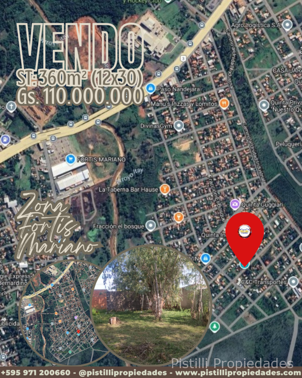 TERRENO BARRIO ISLA AVEIRO EL EUCALITAL LIMPIO ZONA FORTIS MARIANO La propiedad está ubicada a 1.000 metros de FORTIS MARIANO, a metros de la Ruta Nacional #3