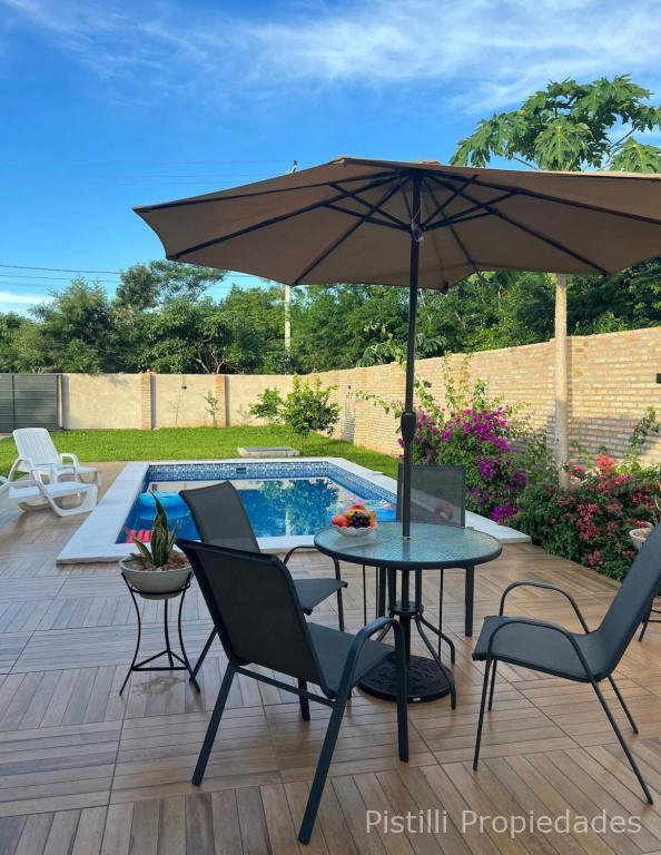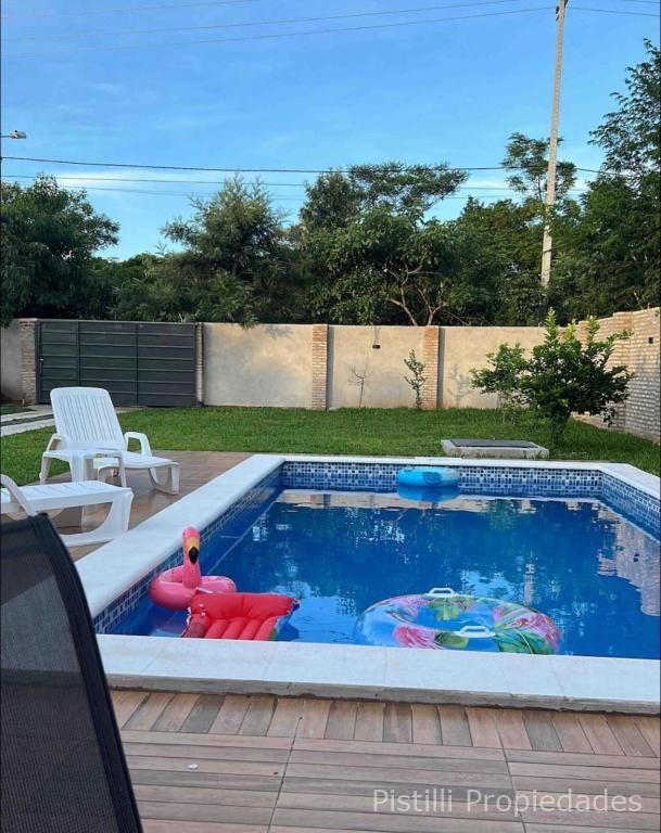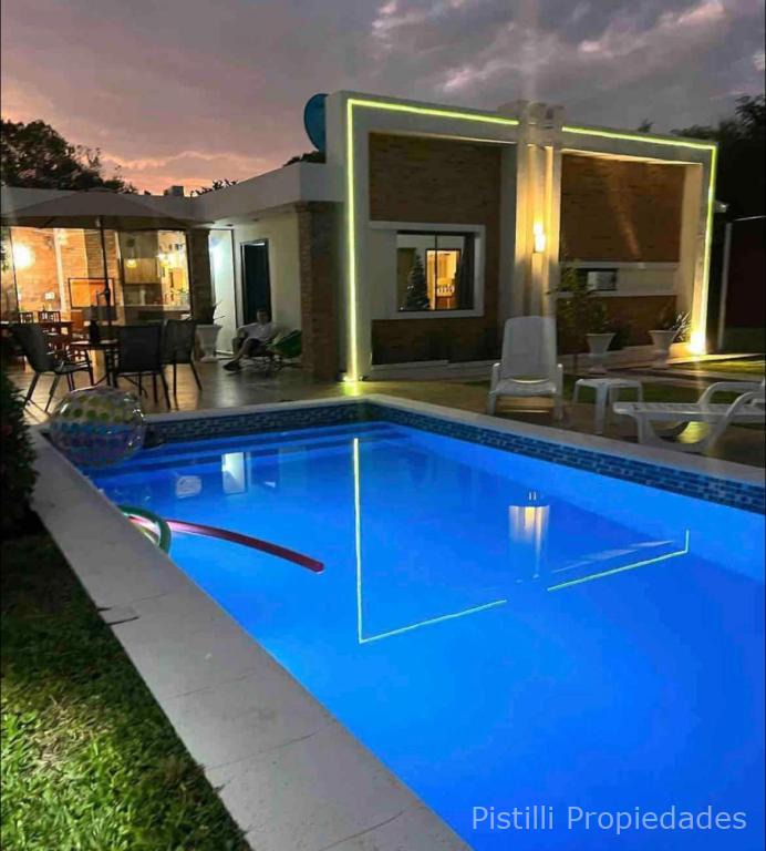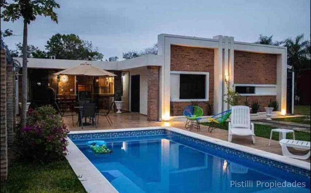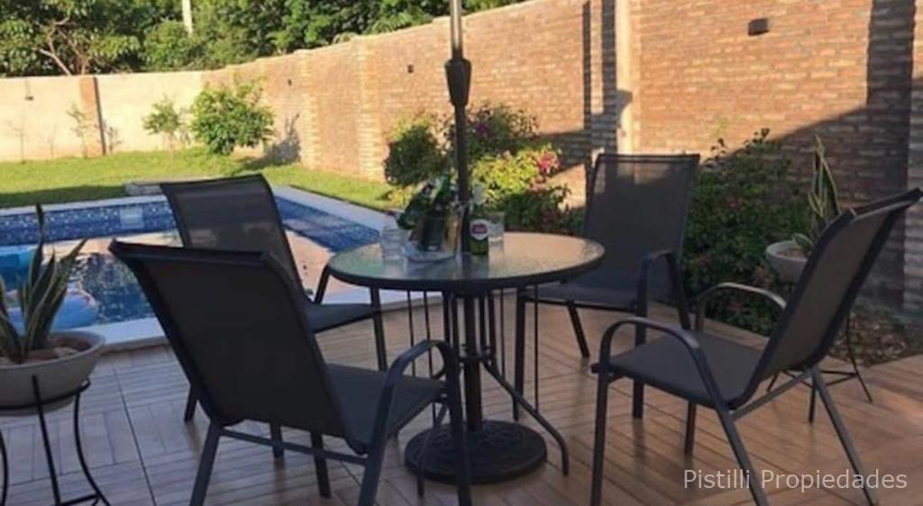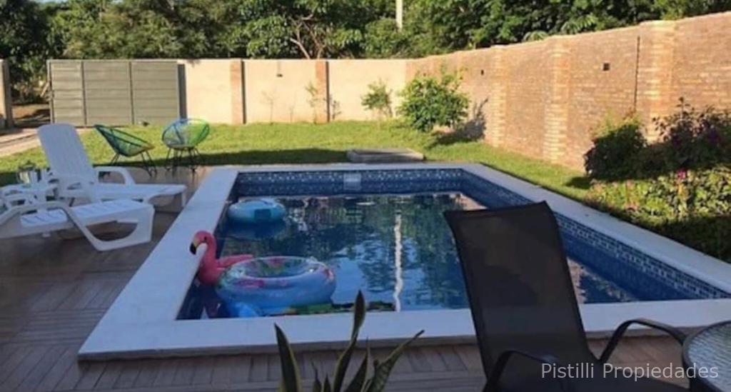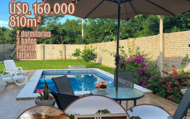 Una piscina de generosas medidas (3.50 x 7.50 m) te brinda el espacio perfecto para refrescarte y relajarte en los días calurosos. Además, hay un quincho climatizado con baño, parrilla y barra, así como un tatacua totalmente equipado con mesada, heladera, lavatorio y mesa comedor para 8 personas. Esto te permitirá disfrutar de reuniones y eventos al aire libre con tus seres queridos.