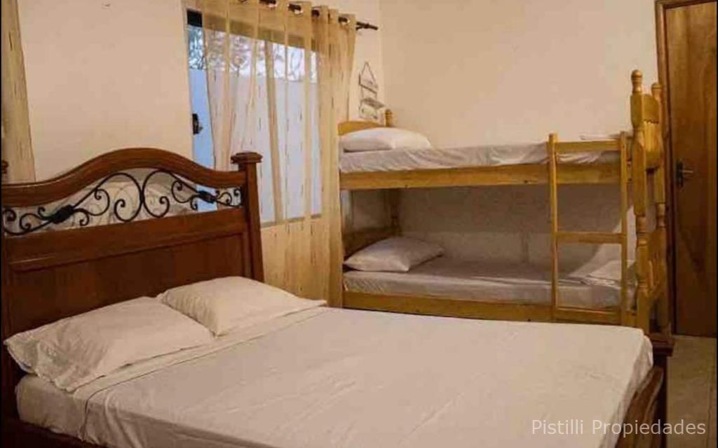 Dormitorio secundario: cama de dos plazas y dos camas de dos pisos