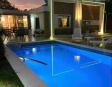 La casa está completamente iluminada con luces LED, alumbrado, guirnaldas colgantes y reflectores multicolor para que puedas disfrutar de tu oasis incluso de noche.