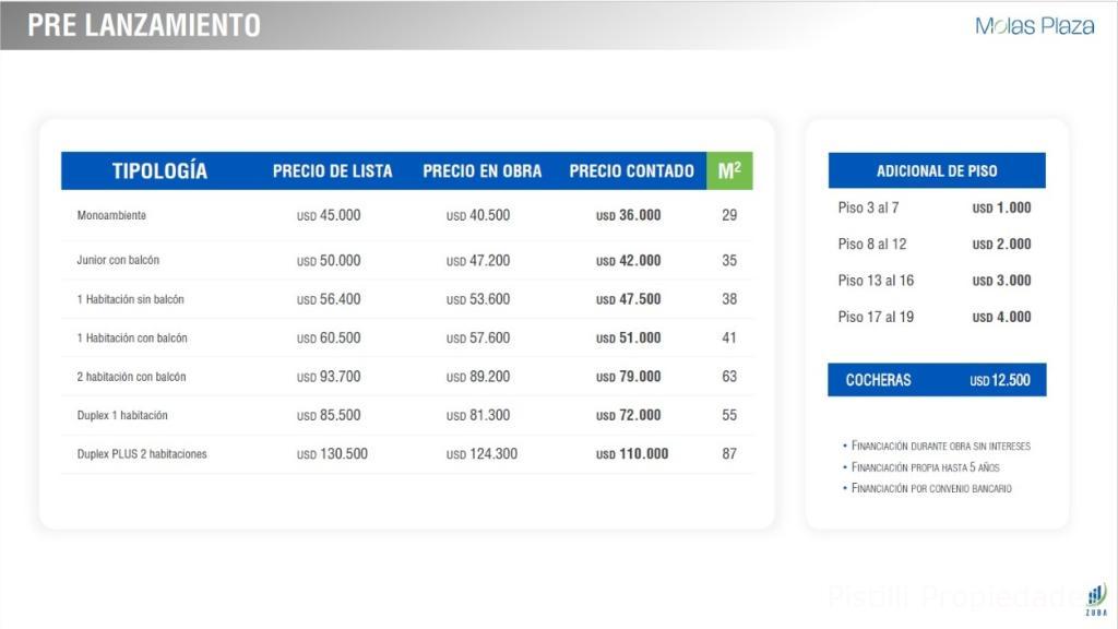 Monoambiente: USD45.000 USD40.500 USD36.000 29