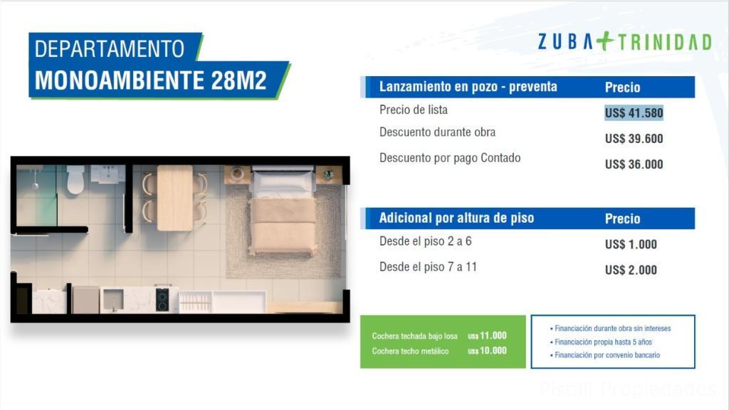 MONOAMBIENTE ⇒ 28m² U$D. 36.000