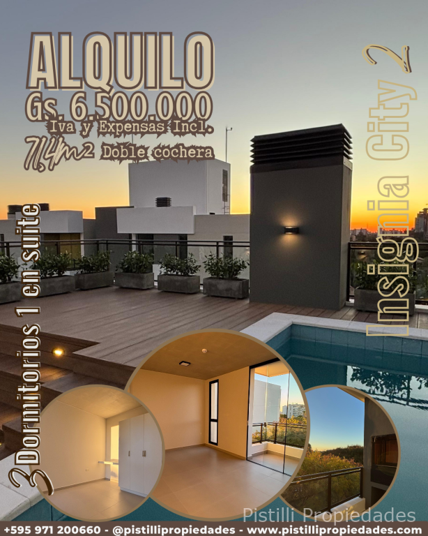 ¡Estrená Lujo y Comodidad! Alquilá Departamento de 3 Dormitorios en "INSIGNIA CITY 2" ¡Tu nuevo hogar te espera en el prestigioso Barrio Mariscal Estigarribia! Te presentamos una oportunidad única para alquilar un departamento a estrenar de 3 dormitorios en el moderno Edificio Insignia City 2, diseñado para ofrecerte una vida de confort, estilo y exclusividad.
