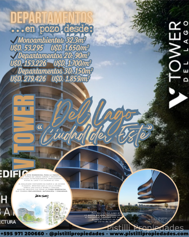 "V Tower del Lago" (también conocido como V Tower Lake) es un proyecto de desarrollo de lujo ubicado en Ciudad del Este, Paraguay. Forma parte de un conjunto de edificios de alta gama de la marca V Tower, que se caracterizan por su diseño moderno y sus amenidades de primer nivel.
