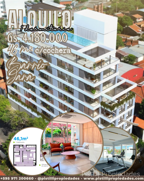 suite, lavadero, balcón c/parrilla. Una cochera.