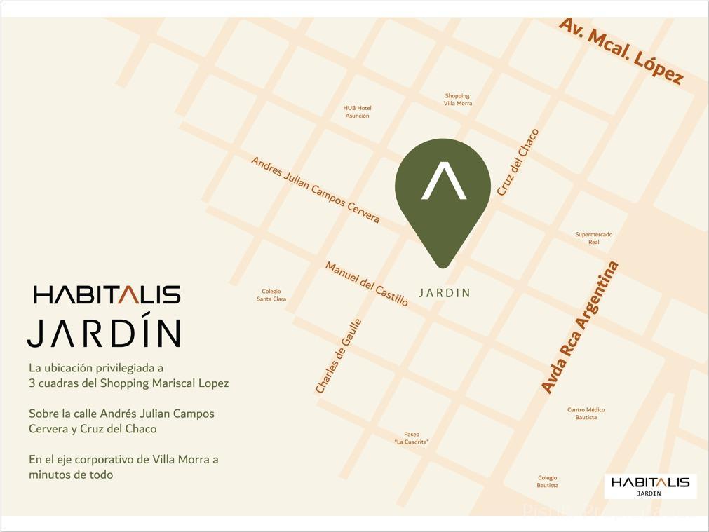 ¡HABITALIS JARDÍN! Experiencia de Vida Única en Villa Morra Ubicación Premium: Dirección: Campos Cervera esq. Cruz del Chaco, Villa Morra. Referencia Clave: A solo 3 cuadras del Shopping Mariscal.