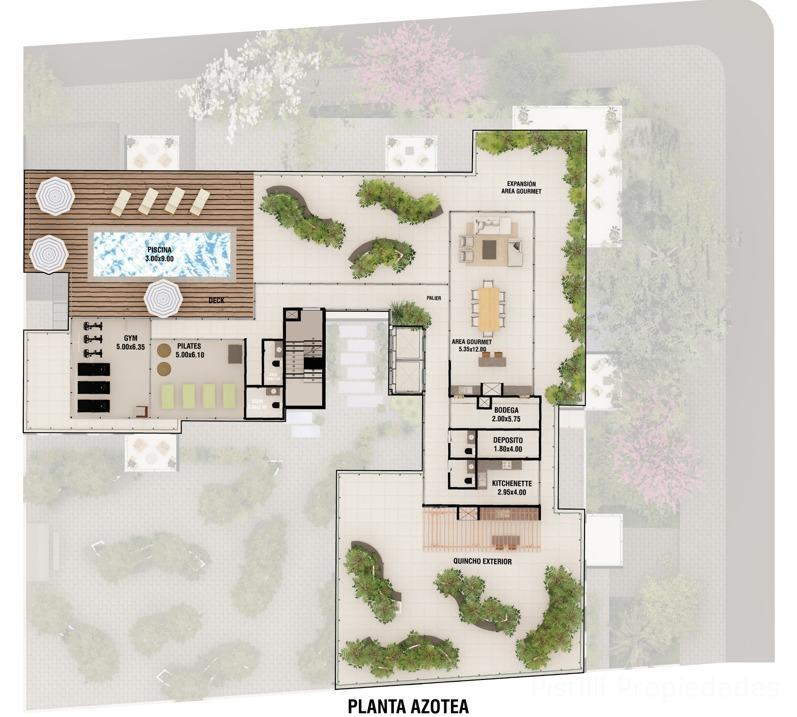 Áreas Sociales: Sala Gourmet climatizada, Cava de Vinos y Quincho. Relax y Deporte: Piscina, Gimnasio y Salón de Pilates.