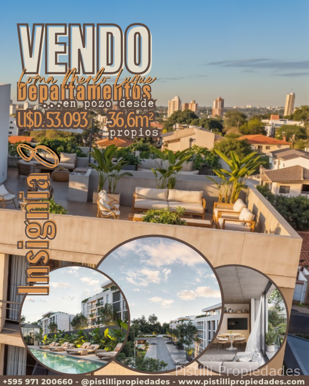 DEPARTAMENTOS EN POZO "INSIGNIA 8" LOMA MERLO En una ubicación estratégica en la ciudad de Luque, a pasos del Aeropuerto, el centro recreativo Rakiura y el centro comercial Plaza Madero. Además, está a solo 15 minutos del eje corporativo de Asunción y conectado a los puntos más importantes de la ciudad. VENDO DEPARTAMENTOS EN POZO EDIFICIO INSIGNIA 8 – LUQUE