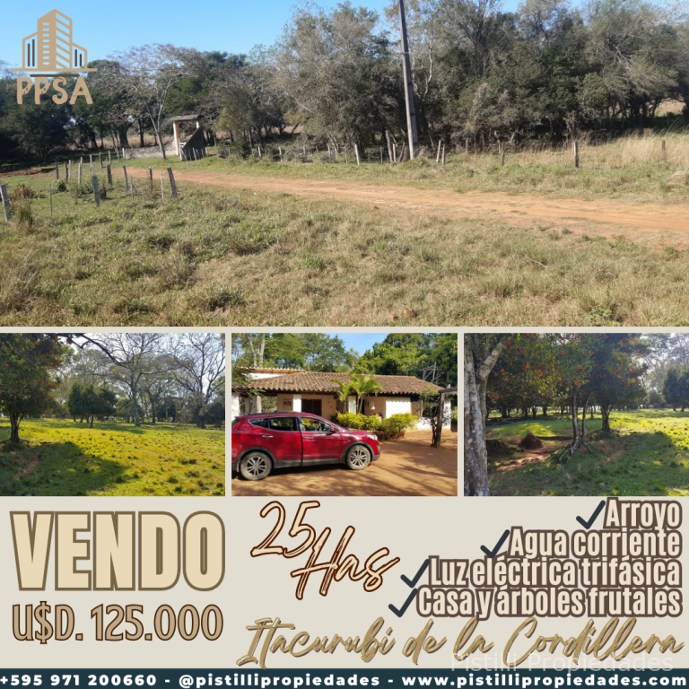 HERMOSA PROPIEDAD 25 HAS. ITACURUBÍ DE LA CORDILLERA ubicada a tan solo 88 km de Asunción, la capital, esta joya escondida ofrece a sus visitantes una experiencia auténtica y llena de encanto.