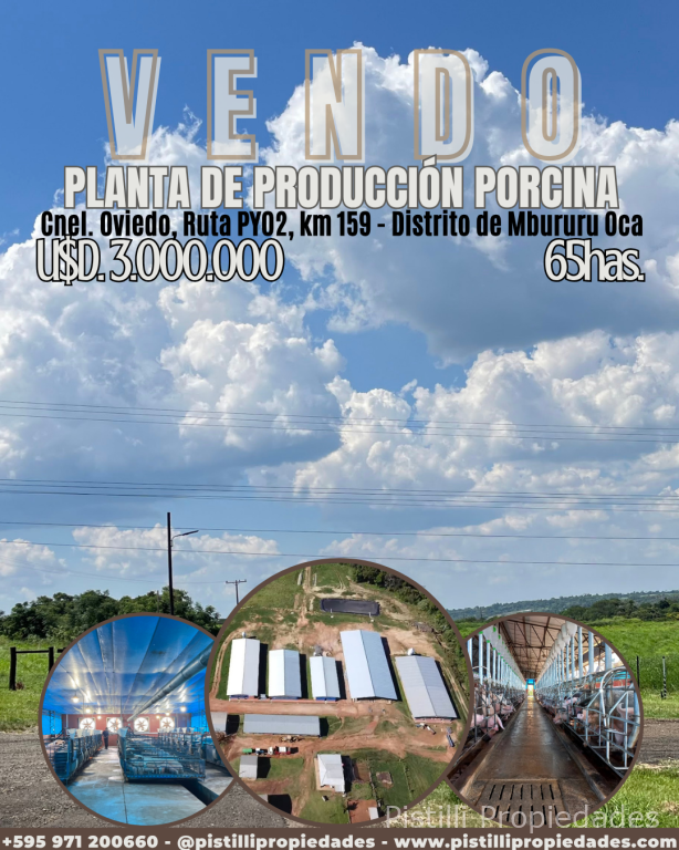 PLANTA DE PRODUCCIÓN PORCINA Cnel. Oviedo sobre la ruta PY02, km 159.- Distrito de Mbururu Oca .