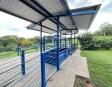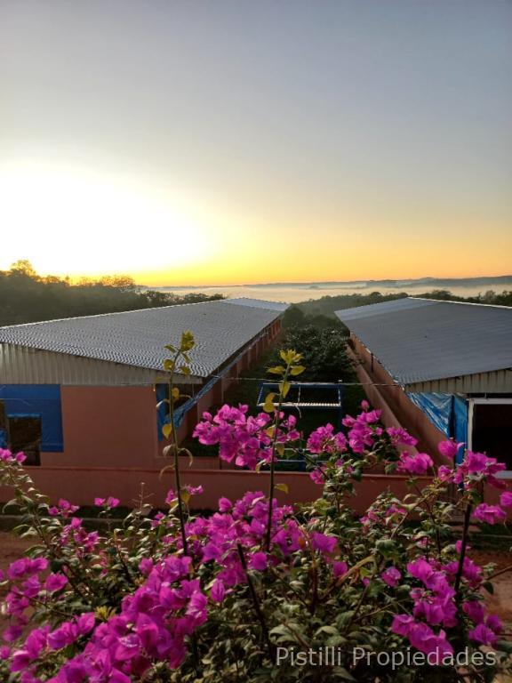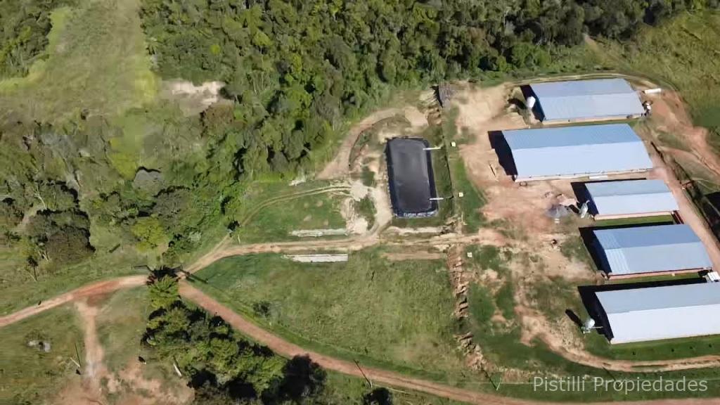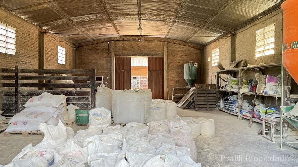 Galpón Nº 4 Pre-engorde: Estructura metálica, techo en chapa de zinc, muro de contención em piedra bruta, zapatas, pilares y vigas de H°A°, relleno y compactación de suelo; mampostería de ladrillo cocido revocado y pintado al látex, piso y canaleta de desagües de H°A°, pilares metálicos revestido revocado y pintado, altura de 1 metro aproximadamente, cerramiento superior con alambre tejido galvanizado, divisiones internas en mampostería de ladrillo cocido, revocado y pintado.