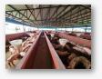 Galpón Nº 3 Crecimiento: Díez boxes con capacidad para 60 cerdos en etapa de crecimiento, construido con estructura de hierro y piso plástico, cuenta con calefacción y ventiladores de 90 centímetros de diámetro.