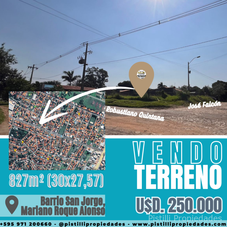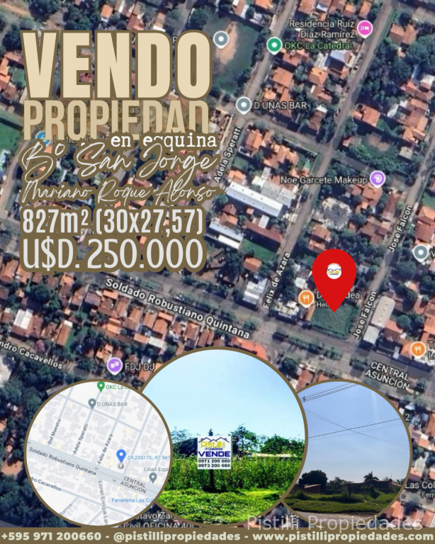 PROPIEDAD EN ESQUINA SOBRE ROBUSTIANO QUINTANA BARRIO SAN JORGE MARIANO ROQUE ALONSO ubicada sobre doble avenida, en esquina para cualquier tipo de desarrollo comercial, próximo a los puertos privados, en el límite de la ciudad de Asunción.