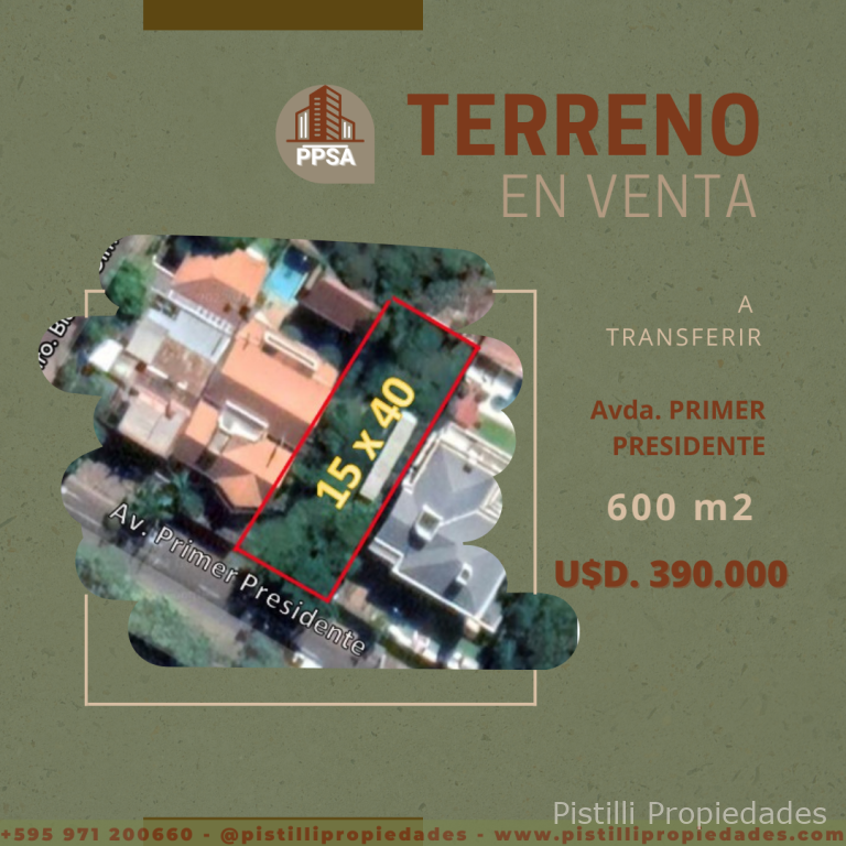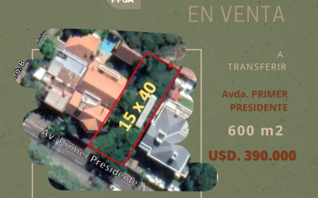HERMOSO TERRENO SOBRE PRIMER PRESIDENTE con una excelente ubicación sobre la Avda. Primer Presidente.